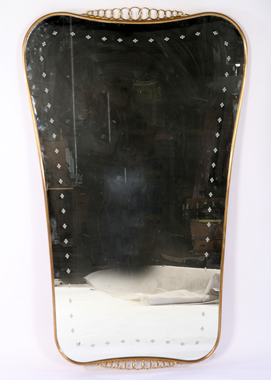 A rare and large Italian brass framed mirror in the manner of Gio Ponti circa 1950.