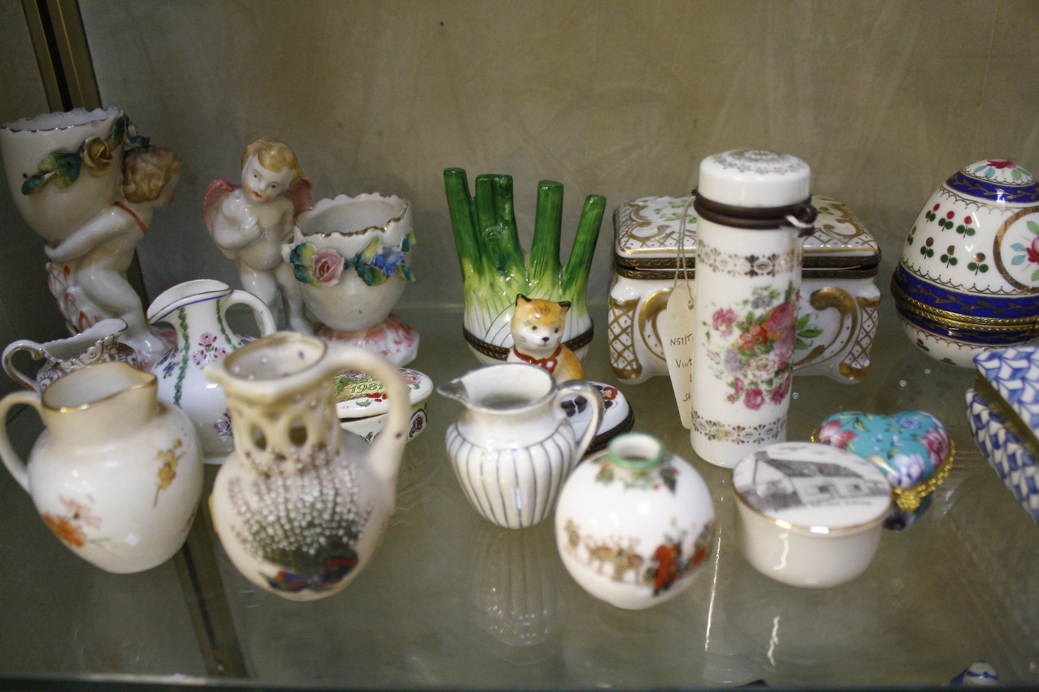 A Royal Doulton miniature vase , decorated with Father Christmas, a Foley miniature jug 'Model of Roman Vase', other miniatures, Victorian porcelain holder, trinket boxes etc