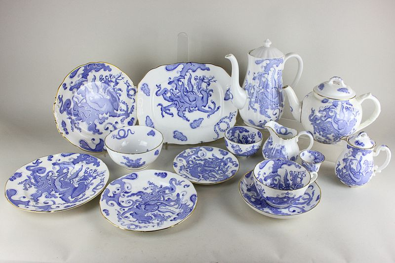A Royal Worcester blue Dragon porcelain part tea and coffee set