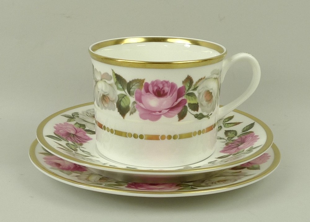 A Royal Worcester porcelain part tea service decorated in the 'Royal Garden' pattern, comprising cake plate, cream jug, sugar bowl, six cups, saucers and plates. (21)