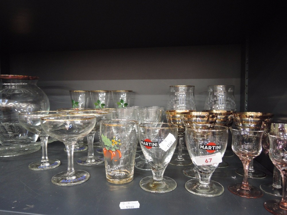 A selection of glassware including branded Martini etc