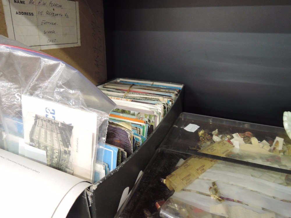 A selection of miscellaneous including postcards, cigar box etc