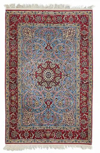 A signed Isfahan rug, Persia. Medallion design. Knotted on silk warps and outlines with silk pile