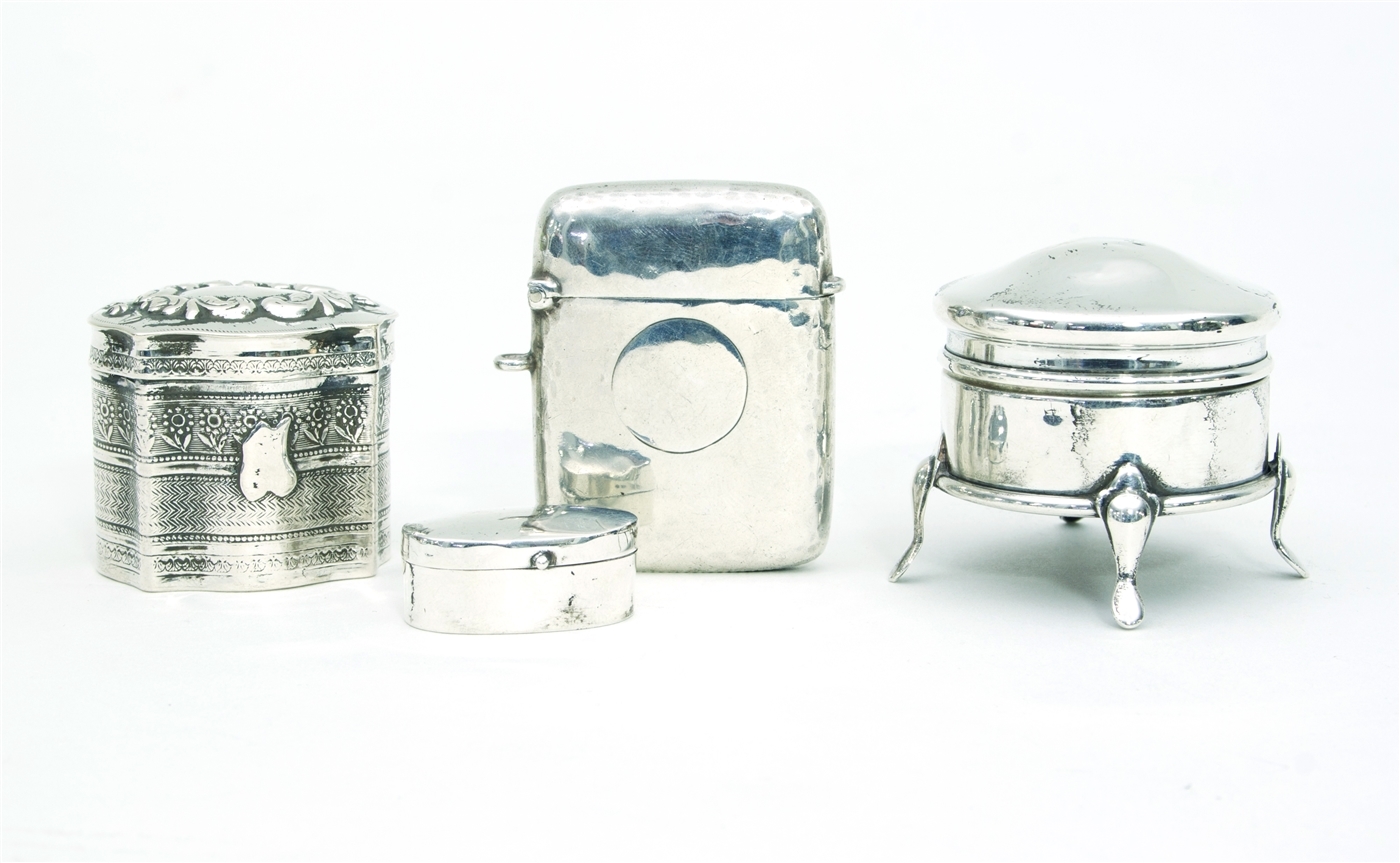 a Dutch silver box of serpentine outline, a vesta case and a pill box