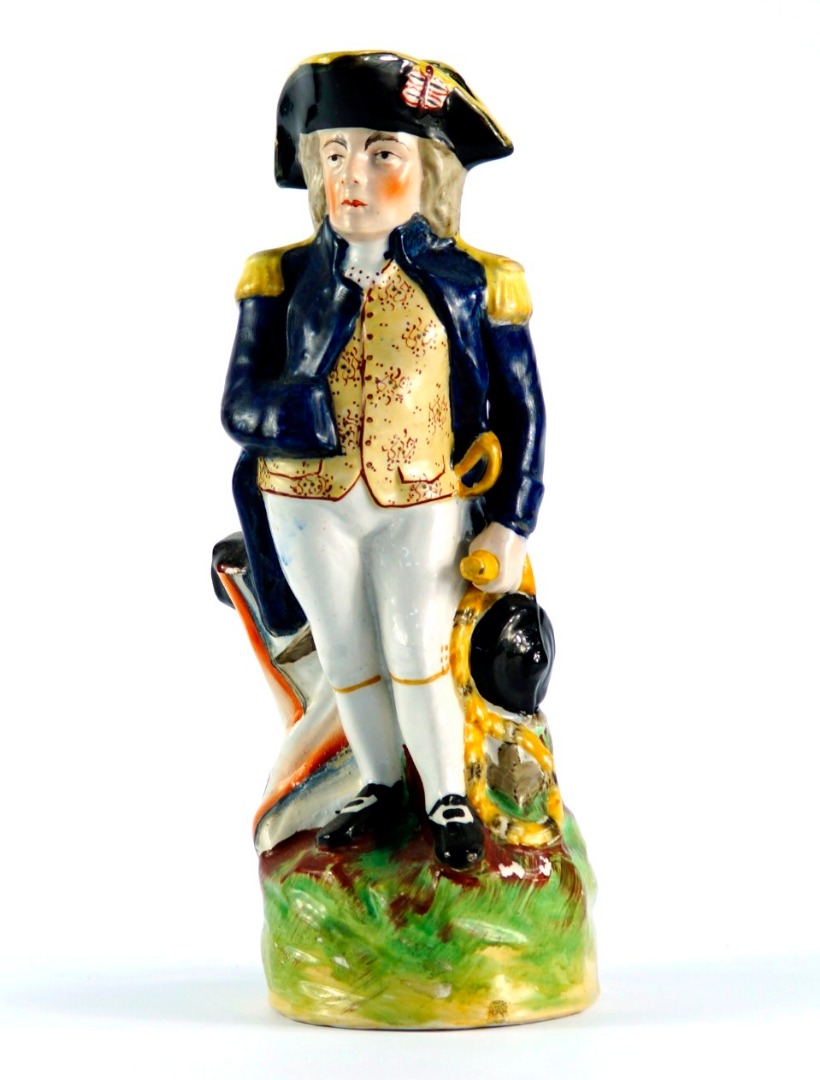 A Staffordshire Pottery Nelson jug, modelled standing on a naturalistic ground