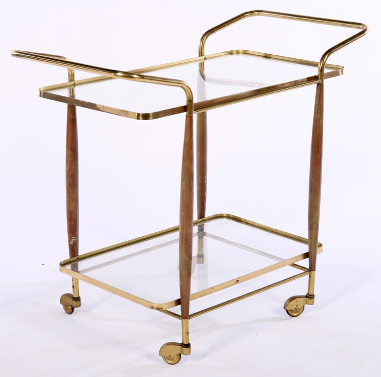 A two tier Italian bronze and glass bar cart circa 1950.