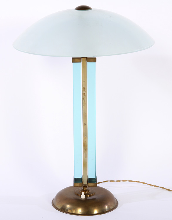 A very good Fontana Arte glass and brass table lamp having glass domed shade.