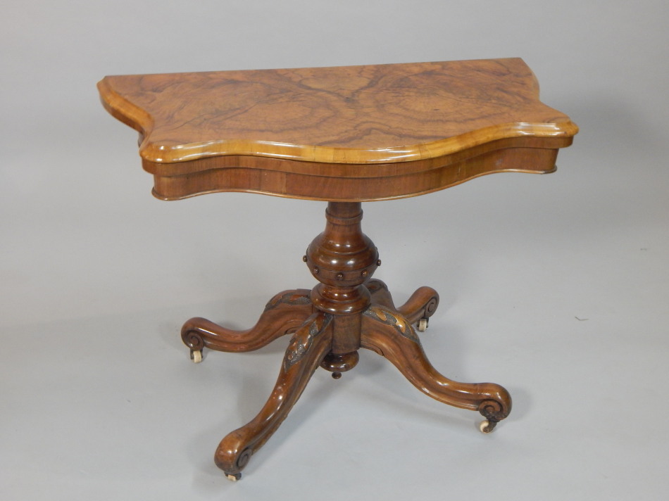 A Victorian figured walnut card table