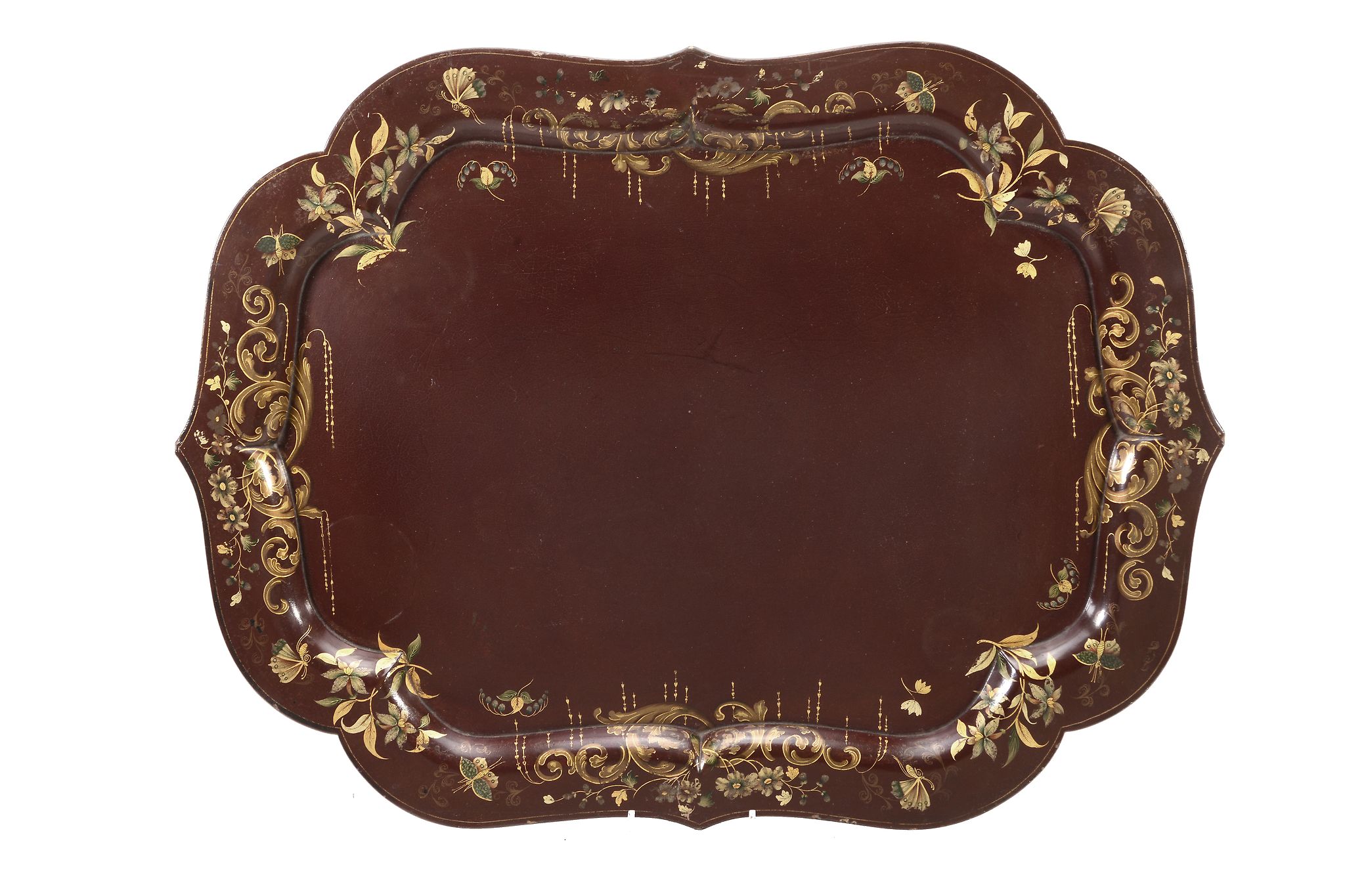 A Victorian lacquered, painted and parcel gilt papier mache tray