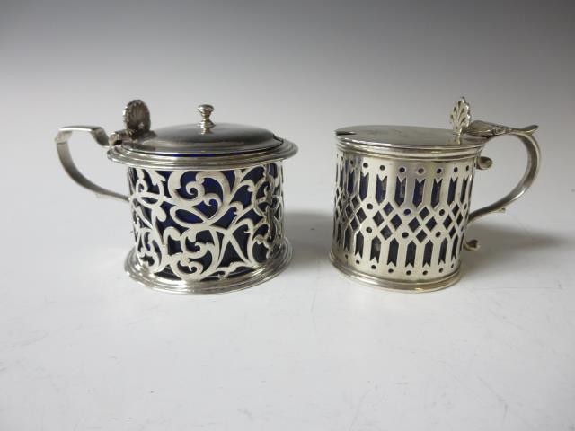A Victorian silver pierced Drum Mustard Pot, London 1839, and another, London 1894