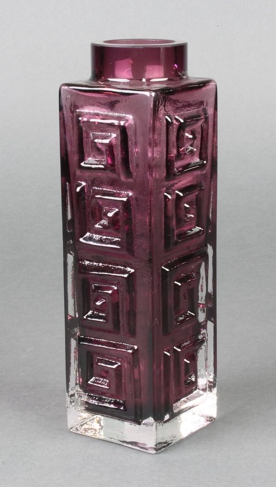 A Whitefriars amethyst Greek Key square vase