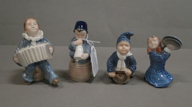 Ada Bonfils, Kunglig Dansk 4st figuriner bl.a. pojke med horn, pojke med dragspel, 1:a sortering varav en 2:a sortering H9-11cm