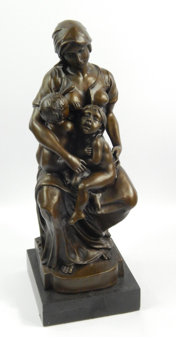 After Vobisobea. A 20thC Talos Gallery bronzed figure of a lady in flowing robes holding two children