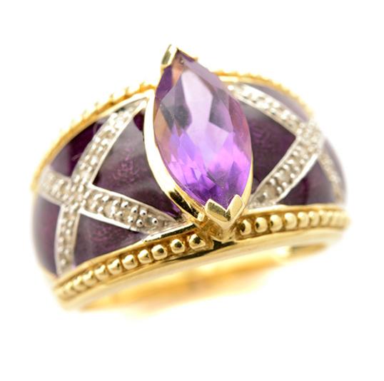 Amethyst, Diamond, Enamel, 14k Yellow Gold Ring