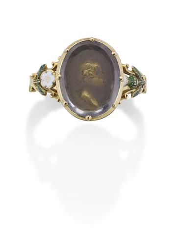 An 18th century enamel ring set with a cameo portrait of Prince Charles Edward Stuart