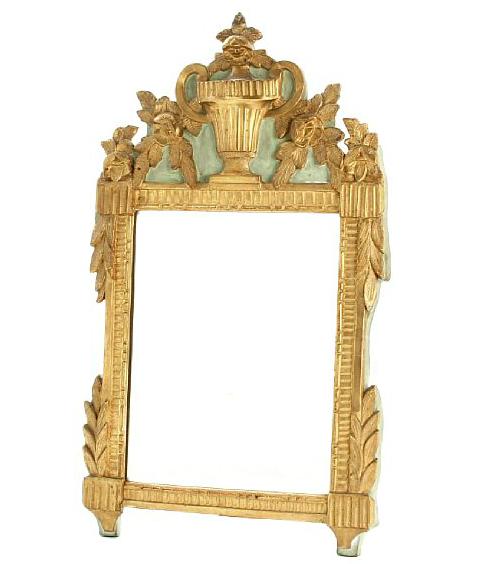 An 18th century Louis XVI gilded and green painted mirror