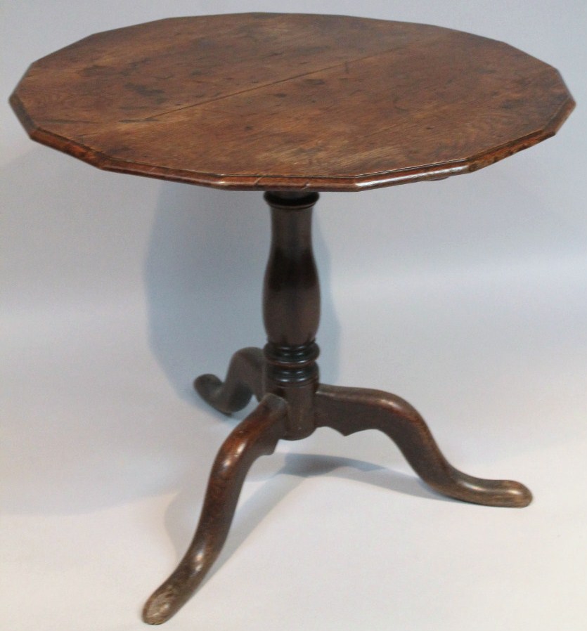 with a geometric swivel top raised on a baluster column terminating in triple cabriole supports