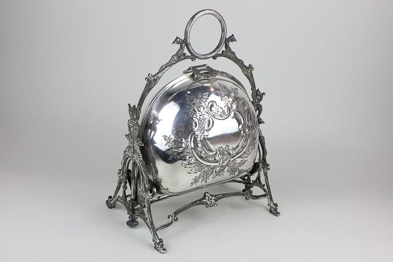 with embossed floral scroll detail, the two sides opening with pierced dividers