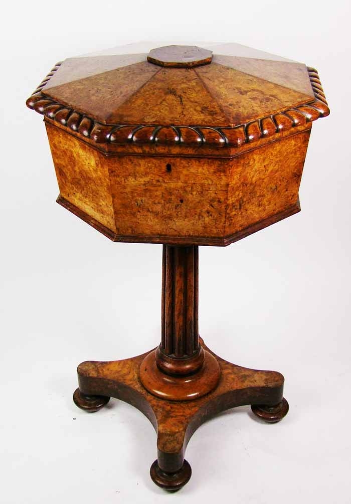 the domed hexagonal top enclosing canisters and mixing bowls, stamped Giles & Edwards, 134 Oxford St, London, on a reeded pedestal quadruped base, turned feet, castors