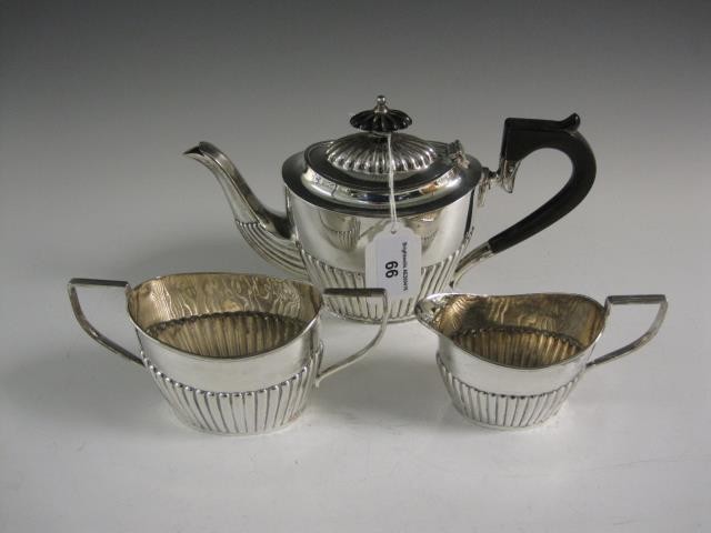 An Edward VII silver Bachelor's Tea Service of oval semi-fluted form, Chester 1907 and Birmingham 1903