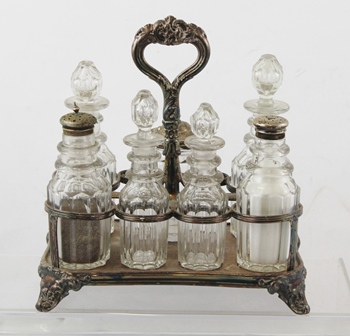 AN EPNS SIX BOTTLE CRUET