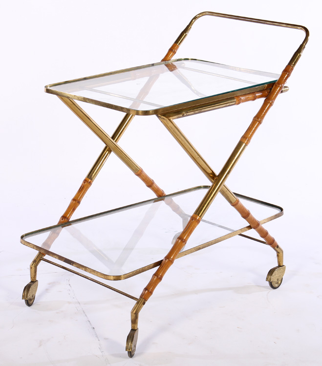 An Italian brass and faux bamboo bar cart attributed to Cesare Lacca