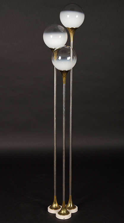 An Italian three arm glass and metal floor lamp attributed to Stilnovo circa 1970