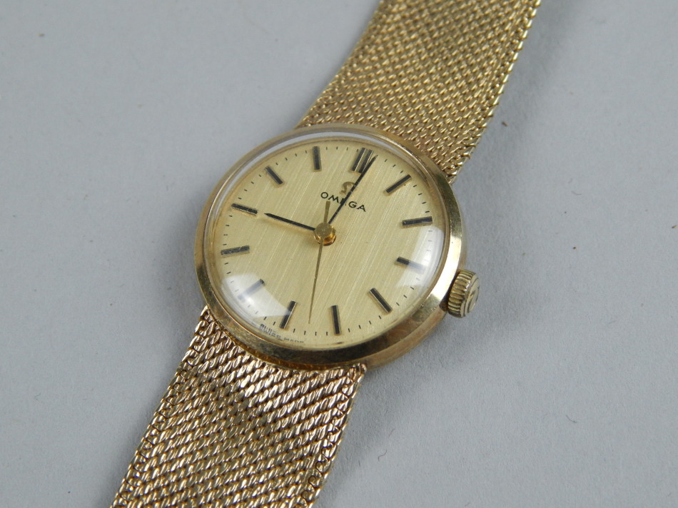 with circular dial, on solid strap, yellow metal, marked 375, 32.3g all in