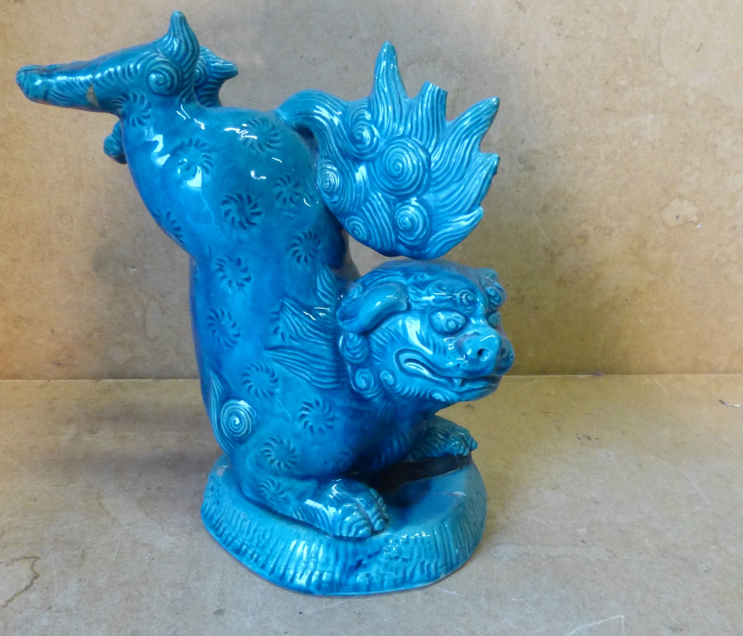 An Oriental Glazed Figure of a Dog of Fo on Turquoise ground (foot restored and face a/f)