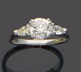 épaulé de deux diamants taille poire, taille: 50, poids: 2,8gr. brut