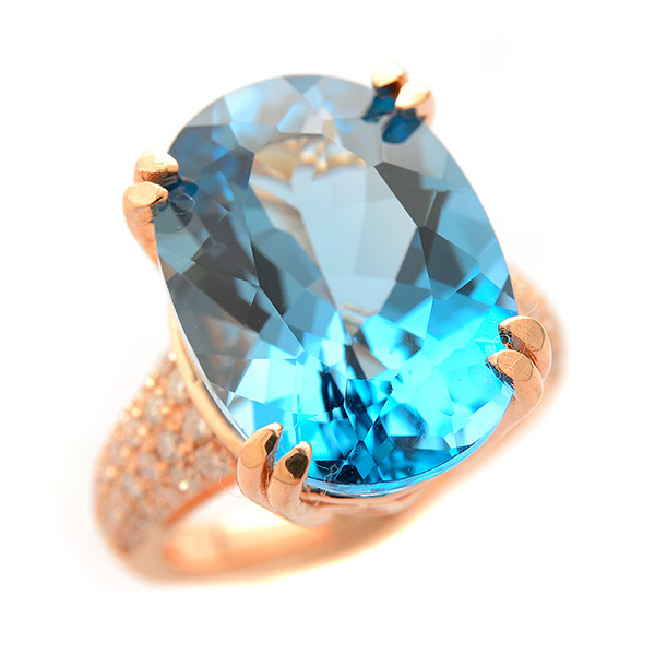 Featuring one oval-cut blue topaz weighing approximately 14.60 cts., accented by sixty full-cut diamonds weighing a total of approximately 0.50 cttw., set in a 14k rose gold mounting.