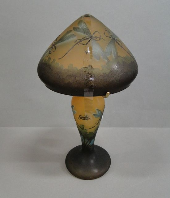 Bordslampa, överfångsglas, märkt Tip Galle, H36cm, sladd och lampfäste saknas