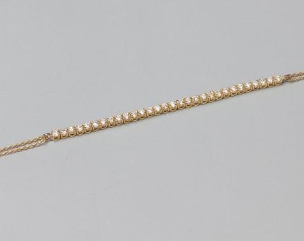 Bracelet formed of two yellow gold chains, 750 MM, centered thirty brilliant, length: 17.5 cm, weight: 4g. gross