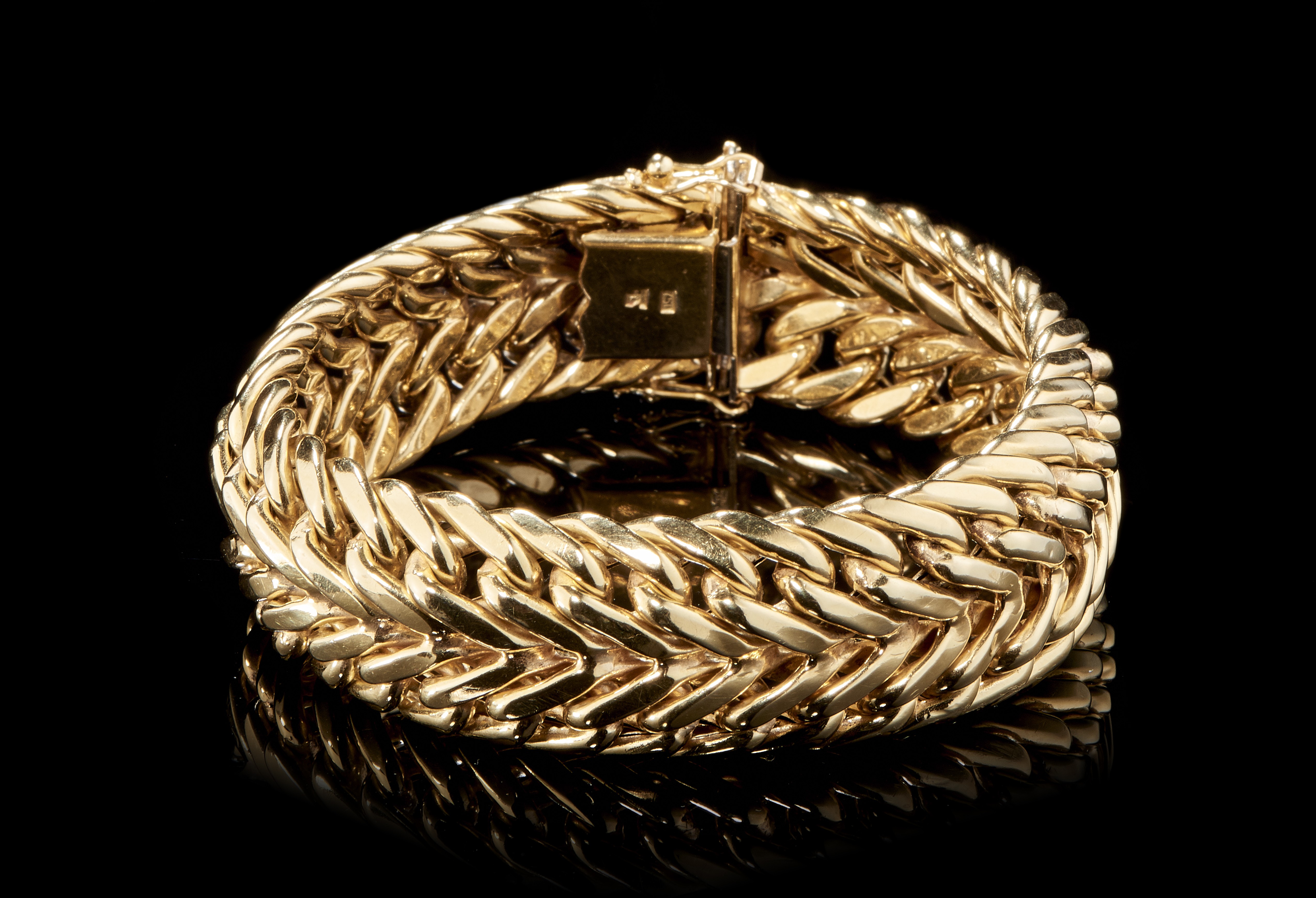Bracelet manchette à maille gourmette double Or 750, L 19 cm, 44 g