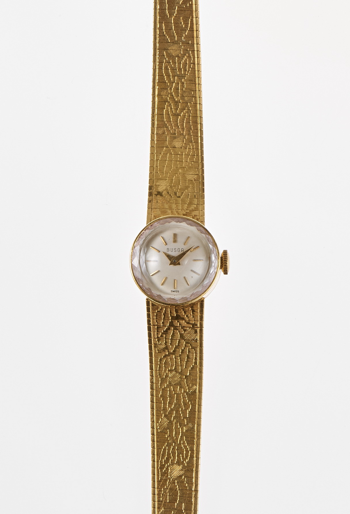 Cream dial, gold-plated hour markers and indexes, circa 1962, 750 gold, 15 mm D, gross weight 26 g