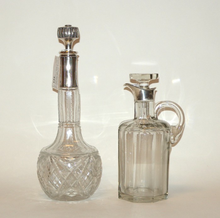 Ground glass with silver mounts. Including one made in Vienna c. 1915 height 38 and 27 cm. The less loose silver mount