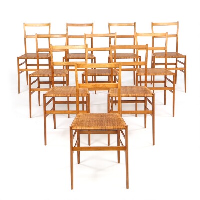 “Superleggera”. 10 chairs of ash, seat stretched with woven cane