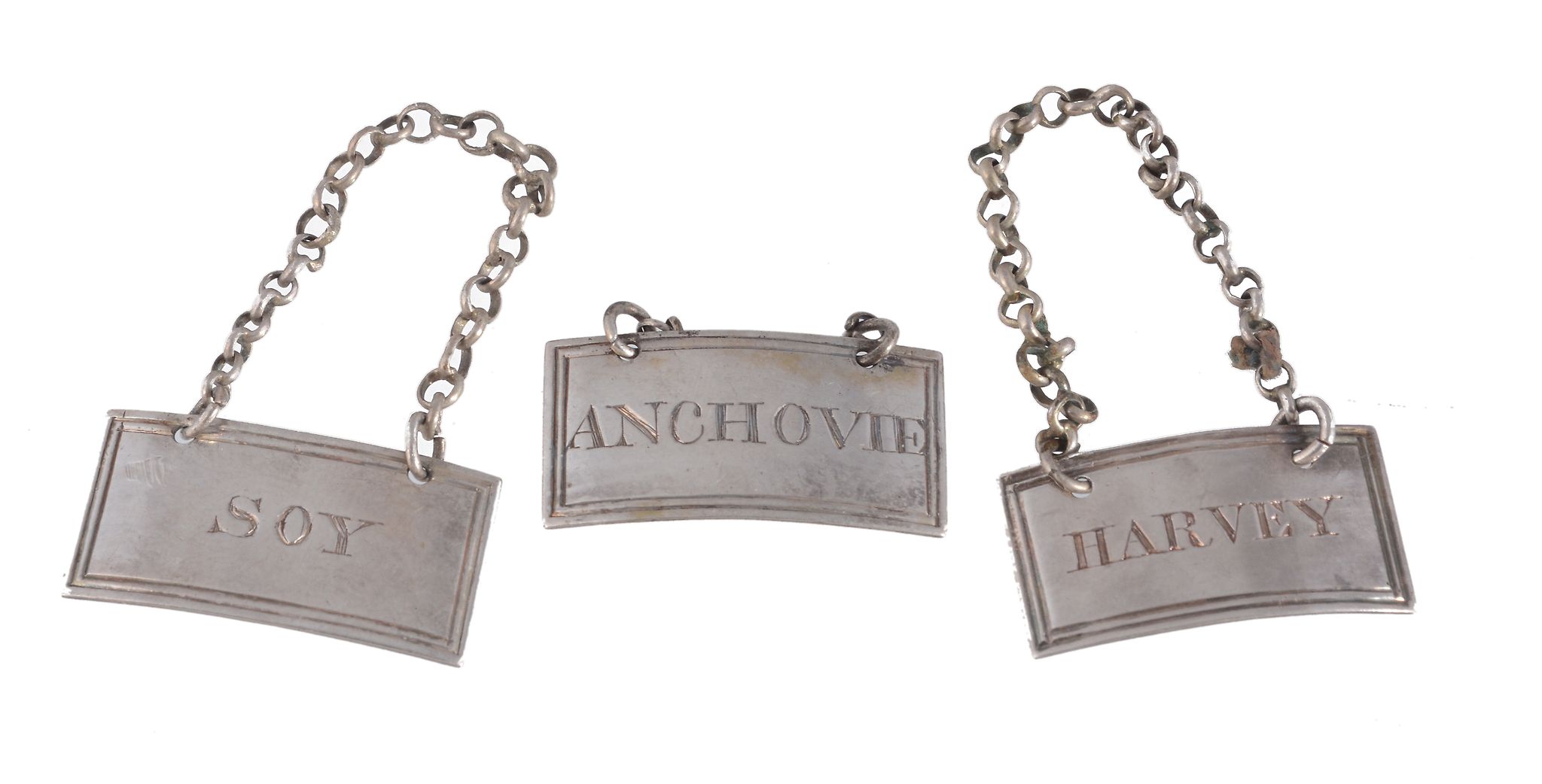each rectangular with a double threaded border, engraved Anchovie , Soy and Harvey