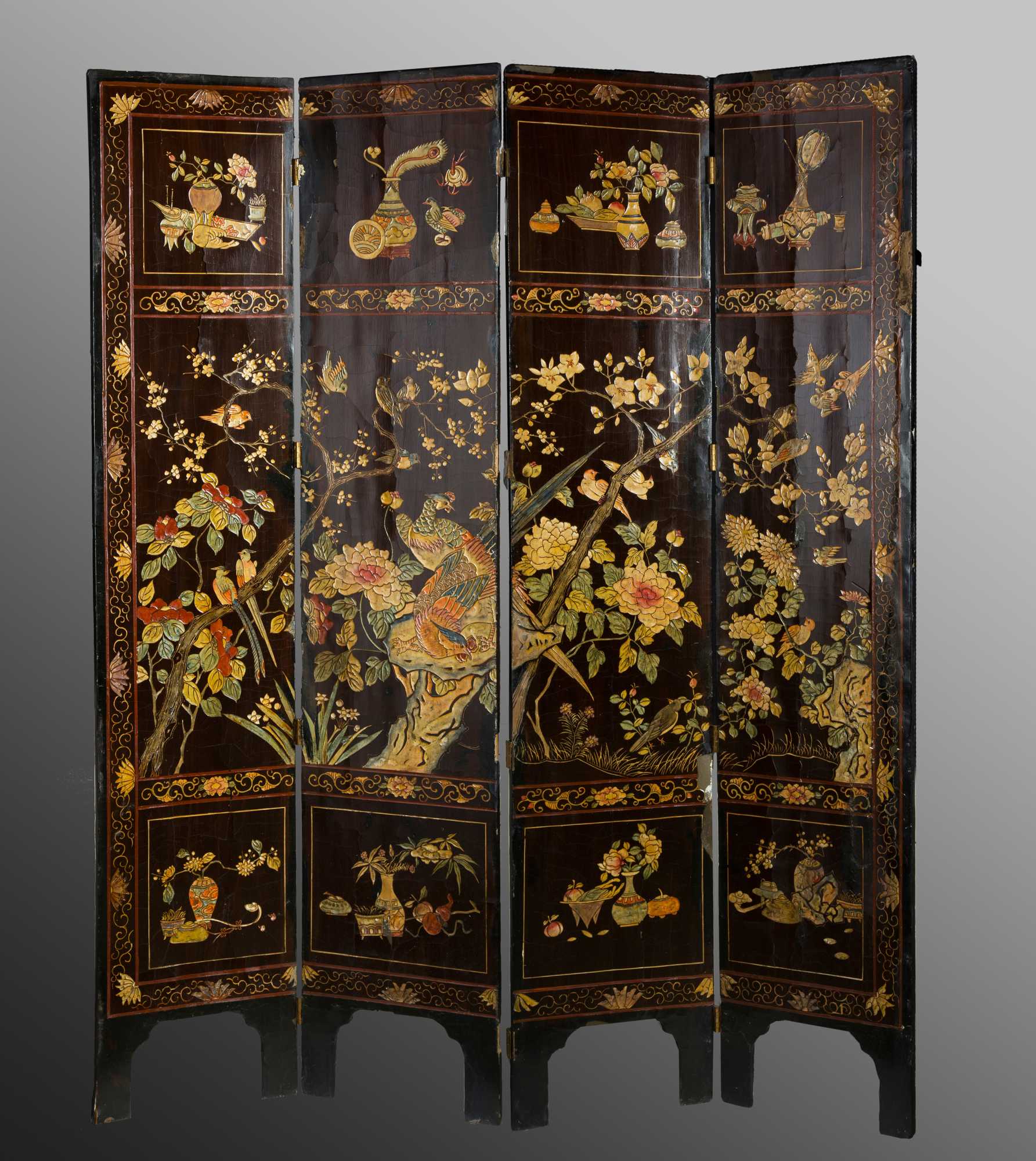 Chinese Four Part Coromandel Floor Screen
