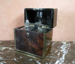 Coffret en loupe de thuya, époque victorienne, à décor de filets de laiton, il ouvre et découvre
