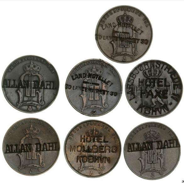 Collection of countermarked coins, Norway, Hotel Faxe, 1876