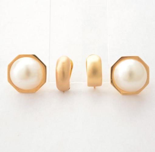 Collection of Two Pairs of Mabe Cultured Pearl, 14k Yellow Gold Earrings