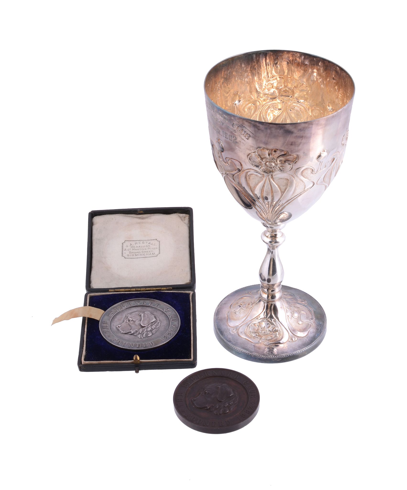 Sheffield 1900, engraved for the St. Bernard Club, embossed with flowers, on a turned stem and a circular spreading foot, 17.5cm high, 202g (6.50 oz)