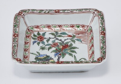 Coupe carrée à émaux wucai, Chine, époque Transition, période Shunzhi (1644-1661)