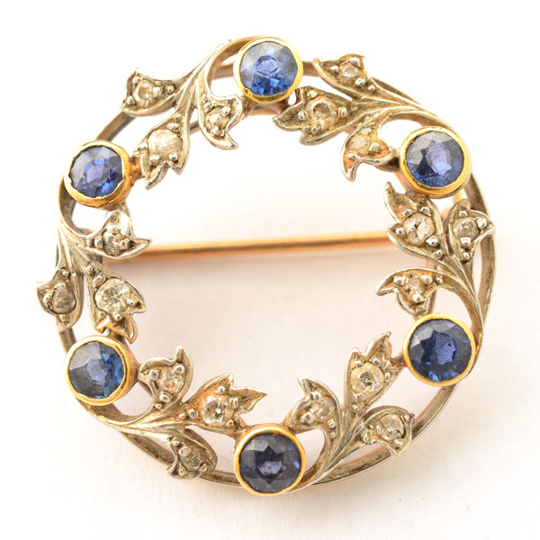 Diamond, 14k White Gold Ring. Art Nouveau Sapphire, Diamond, Platinum-Topped, 14k Yellow Gold Circle Brooch.