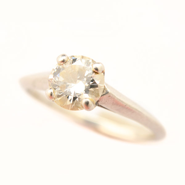 Featuring one old European-cut diamond weighing approximately 0.75 ct., set in a platinum mounting.