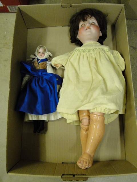 sannolikt Armand Marseille L57cm, kropp med skador samt docka Armand Marseille L34cm