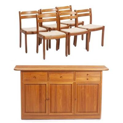 Dyrlund, 6 chaises en teck et un buffet en teck danois