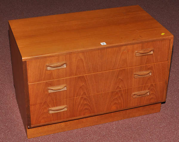 A small chest of three long drawers, the top drawer fitted a cutlery compartment