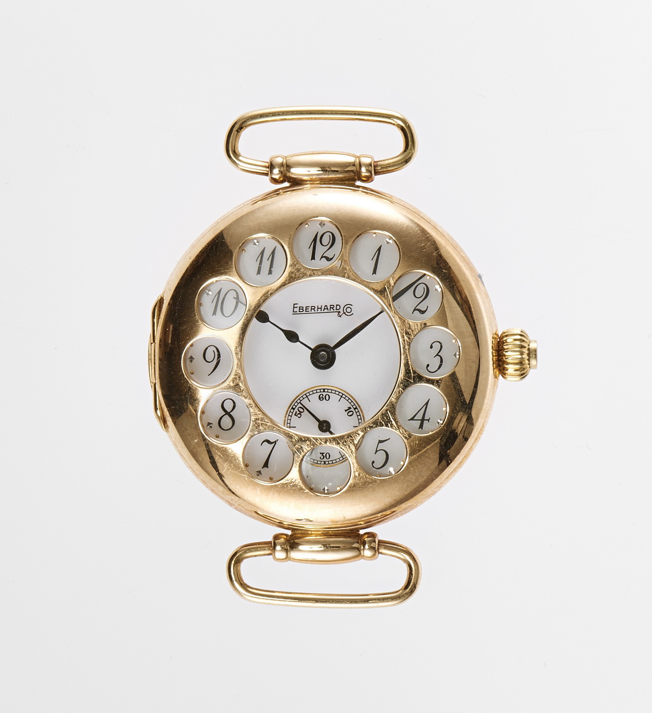 Cream dial, hands and black Arabic numerals, seconds at 6 o'clock, gold 585, D 33 mm, gross weight 33 g